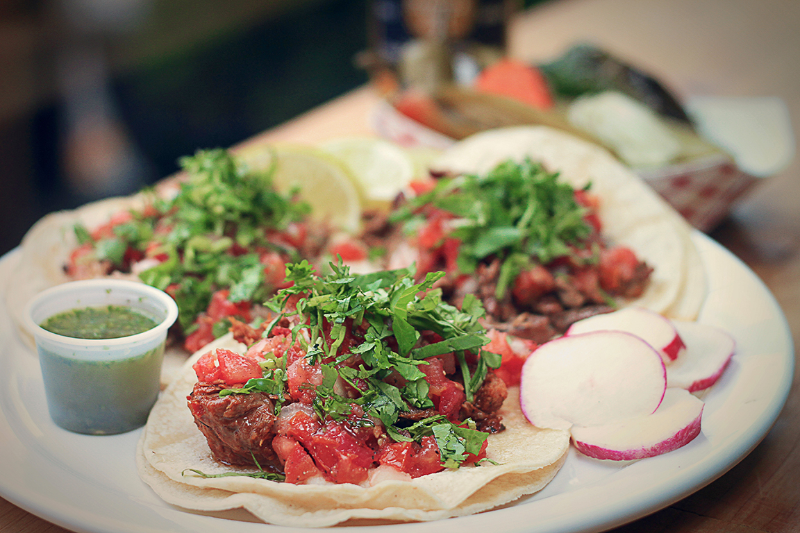 Corn tortillas, your choice of meat or fresh grilled vegetables, topped with Pico de Gallo